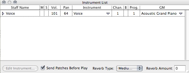 Window-valikossa on Instument List, josta voidaan valita MIDI-toistoon liittyviä asioita.