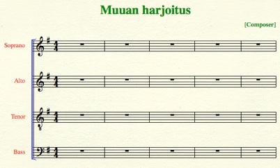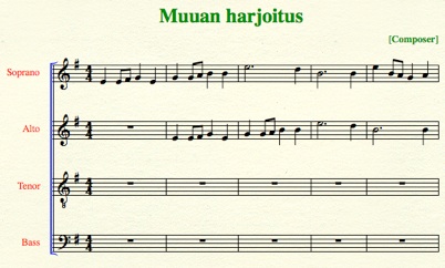 Tehdään harjoittelua varten uusi nuotti: kuoronuotti (chorus), jossa on sopraano, altto, tenori ja basso.