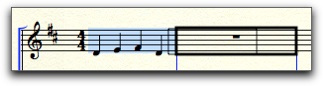 NotePad näyttää työkalun nimen, kun kursori on sen päällä. Jos pidät cmd (ctrl) -näppäintä pohjassa, tulee esiin vihje siitä, mitä työkalulla tehdään. Osoita hiirellä ensimmäistä tahtia. Se muuttuu siniseksi. Siirrä hiirtä oikealle kunnes musta kehys on seuraavan tahdin kohdalla. Vapauta hiiri ja tahti kopioituu uuteen tahtiin.