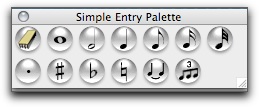 Mikäli Simple Entry Palette ei ole näkyvissä, avaa se komennolla Window> Simple Entry Palette. Alla oleva paletti ilmestyy näkyviin. Paletin muotoa voi muuttaa raahamalla sen oikeasta alareunasta.