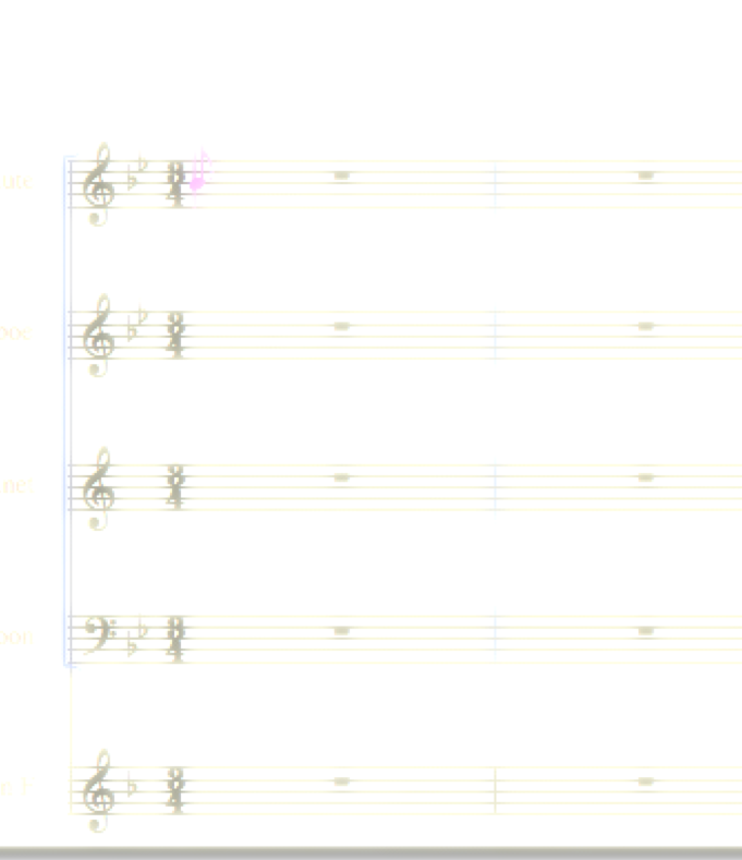 Woodwinds-perheestä poimitaan huilu, oboe, klarinetti ja fagotti sekä brass-perheestä käyrätorvi. Onko näkymä samanlainen kuin alla olevassa kuvassa? >Next